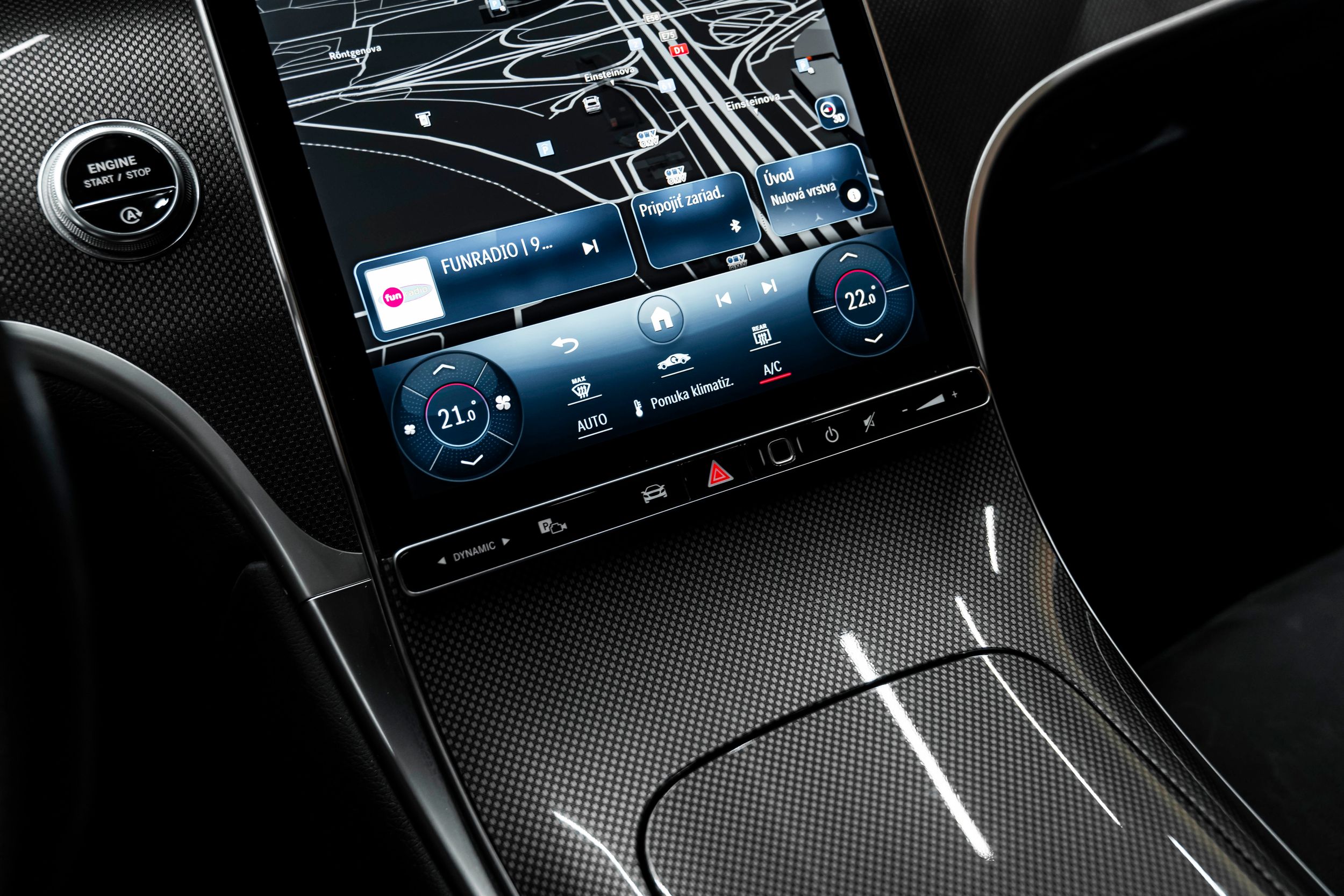 Carbon fibre upper part of central console,