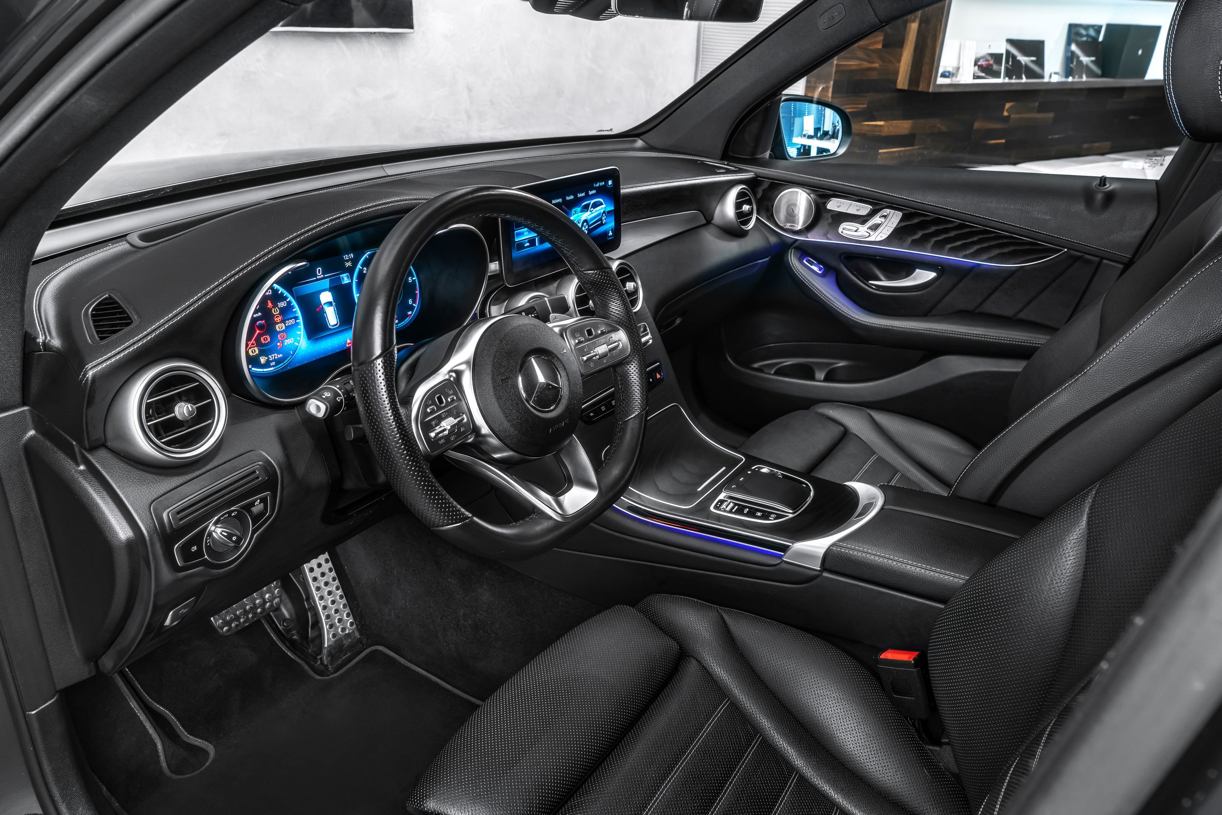 Ambientní osvětlení, palubní deska čalouněná umělou kůží Artico, výbavový paket: Energizing Plus, high-end paket asistenčních systémů řidiče, síťová přepážka do zavazadlového prostoru, head-up displej (zobrazení vpředu), víko zavazadlového prostoru s automatickým otevíráním a zavíráním, high-end paket infotainmentu, interiér: jemné jasanové dřevo, černá, komfortní automatická klimatizace (3zónová Thermotronic), high-end paket komfortu, zvětšená palivová nádrž, high-end paket osvětlení, kola z lehkých slitin 8,5x20 (AMG, 5 dvojitých paprsků, černá), metalický lak, paket Night, zadní boční airbag, čalounění sedadel: kůže, přední sedadla: klimatizace, systém Burmester Surround, nezávislé topení (nezávislé topení).
