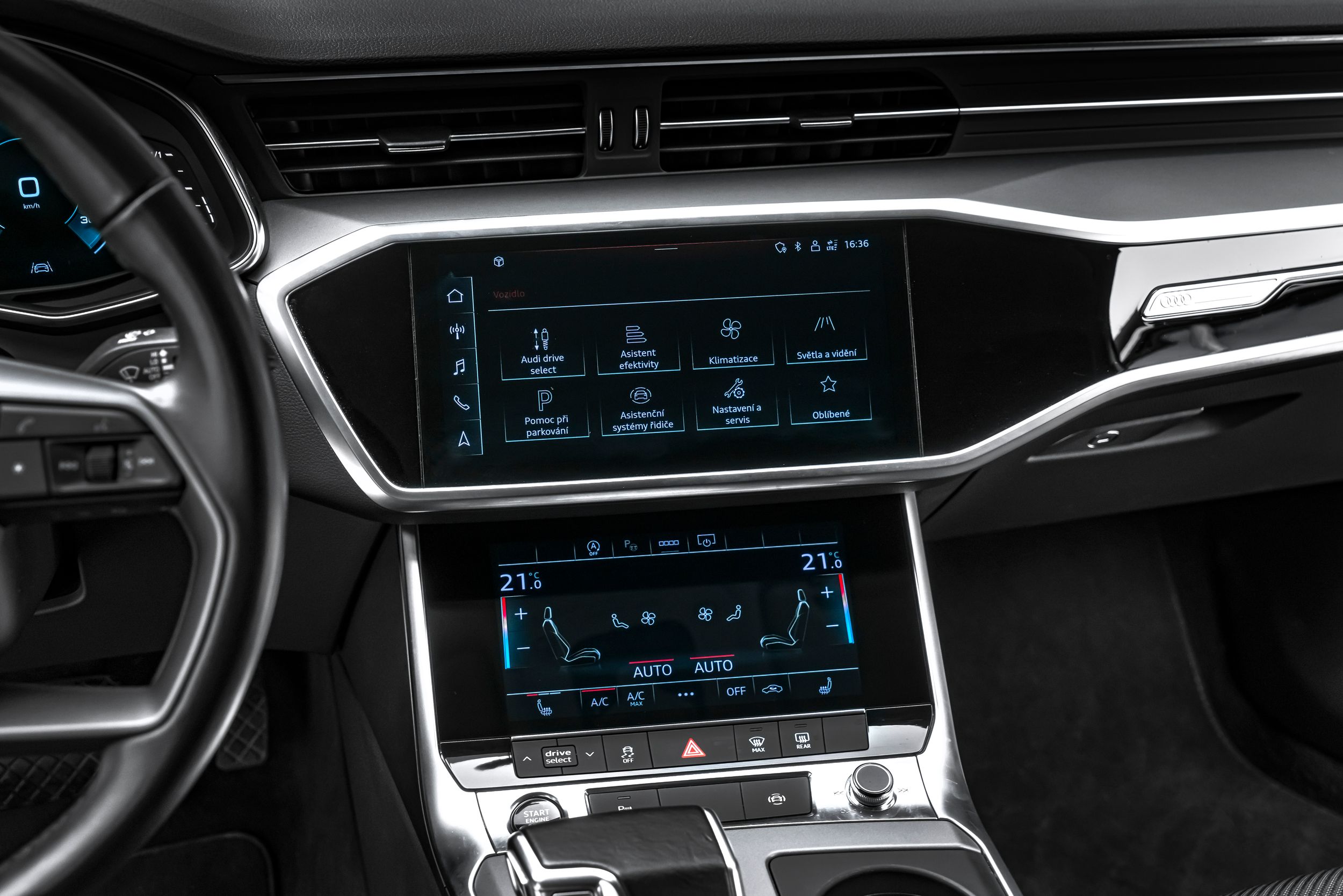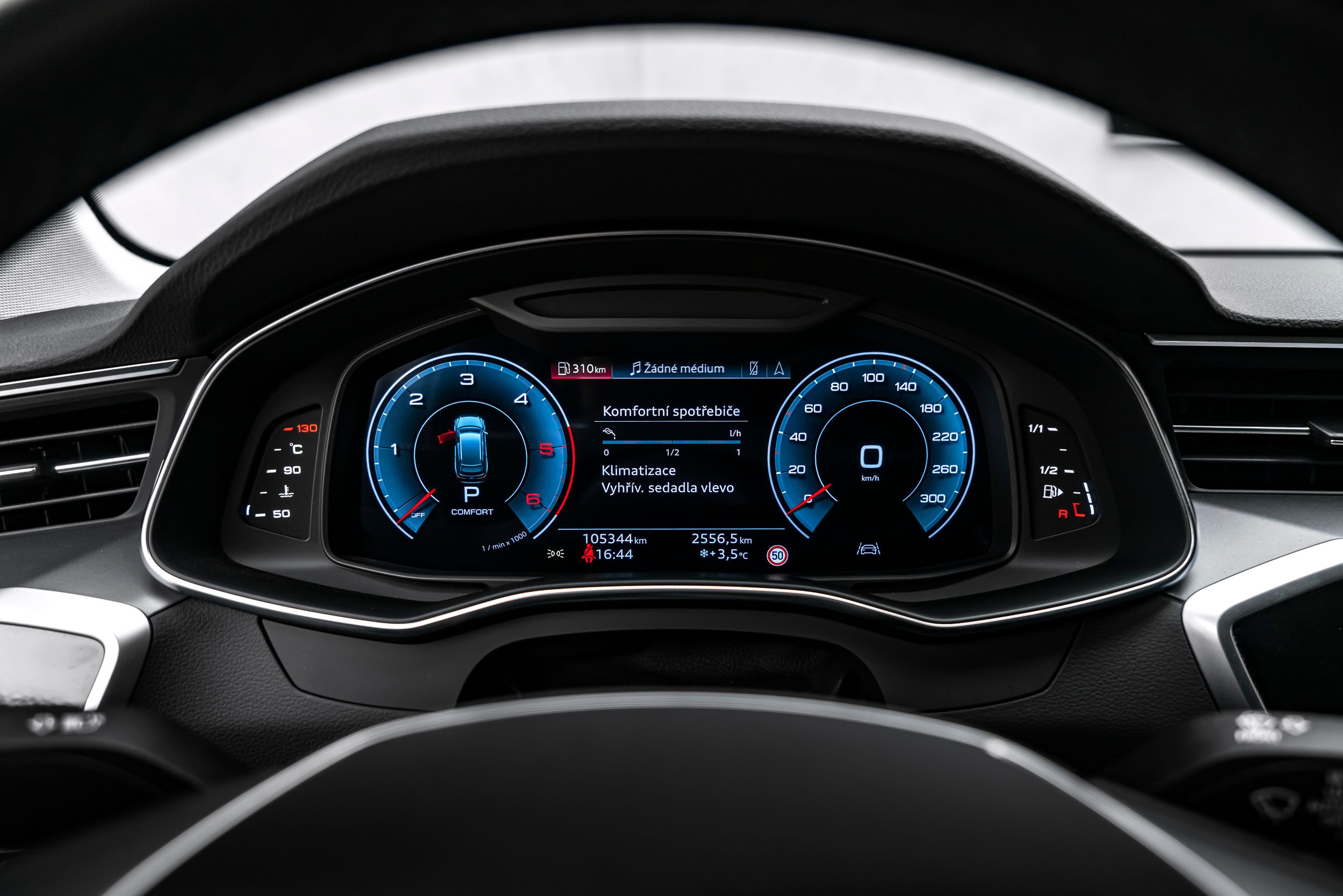 Elektricky ovládaná vnější zrcátka Nastavitelná, vyhřívaná a sklopná vnější zrcátka s automatickým stmíváním a asistentem pro sledování obrubníku; přední, boční a zadní parkovací asistent s akustickým a vizuálním zobrazením prostorového zobrazení; systém varování před opuštěním jízdního pruhu včetně nouzového asistenta s rozpoznáváním dopravních značek pomocí kamery; 24litrová nádrž na močovinu (SCR); automaticky stmívatelné zpětné zrcátko; úchyty Isofix pro dětské sedačky na sedadle spolujezdce; 4zónová automatická klimatizace; litá kola 7,5x17 (10paprskový design, pro zimní pneumatiky); litá kola 8x18 (5dvouramenný design); Matrix LED světlomety; multimediální rozhraní MMI Navigation Plus s MMI Touch; systém sledování tlaku v pneumatikách; couvací kamera; přední a zadní boční airbagy; vyhřívaná přední sedadla; speciální bílý lak Ibis White; dva nabíjecí porty USB typu C. Cestující vzadu, tónovaná zadní okna (zatmavená skla) a akustická skla pro okna předních dveří.