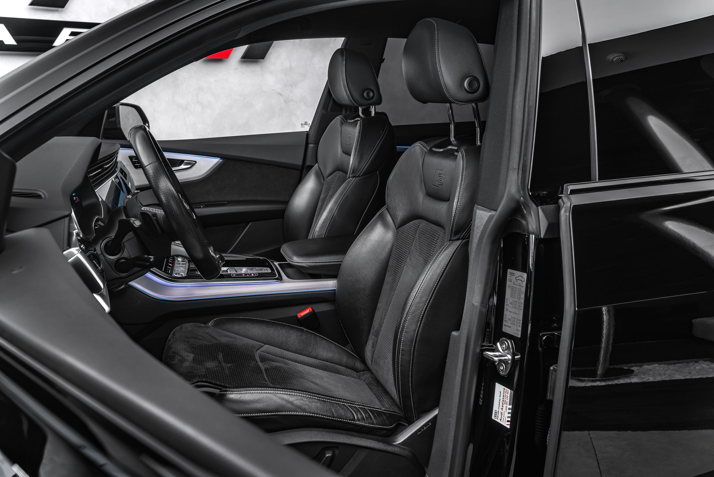 Řízení všech kol, paket asistenčních služeb Tour, rozhraní Audi music v zadní části vozu, paket výbavy S line Sport / Plus, elektricky nastavitelná vnější zrcátka. Nastavitelná, vyhřívaná a sklopná vnější zrcátka s automatickým stmíváním a paměťovou funkcí, červeně lakované brzdové třmeny, černé střešní nosiče, zamykání kol, světlomety HD Matrix LED, úchyty Isofix pro dětské sedačky na sedadle spolujezdce, 4zónová automatická klimatizace, digitální přístrojový panel (virtuální kokpit plus), komfortní klíč se senzorem ovládaným otevíráním víka zavazadlového prostoru (otevírání + zavírání), paket konturového/ambientního osvětlení (plus), sportovní kožený volant (3ramenný, zploštělý dole) s multifunkčními a řadicími pákami, kola z lehkých slitin 10x22 (5paprsková, hvězdicový design, antracitově černá lesklá úprava, diamantově soustružená), černý paket Styling, couvací kamera, dělené/skládací a posuvné opěradlo zadních sedadel (40:20:40), elektricky dovírané dveře, čalounění sedadel: Alcantara Frequency/kůže, elektricky nastavitelná přední sedadla. Nastavitelné (s pamětí), audiosystém Bang & Olufsen, nezávislé topení, design nárazníku: základní (plně lakovaný), tónovaná zadní okna (zatmavená skla).