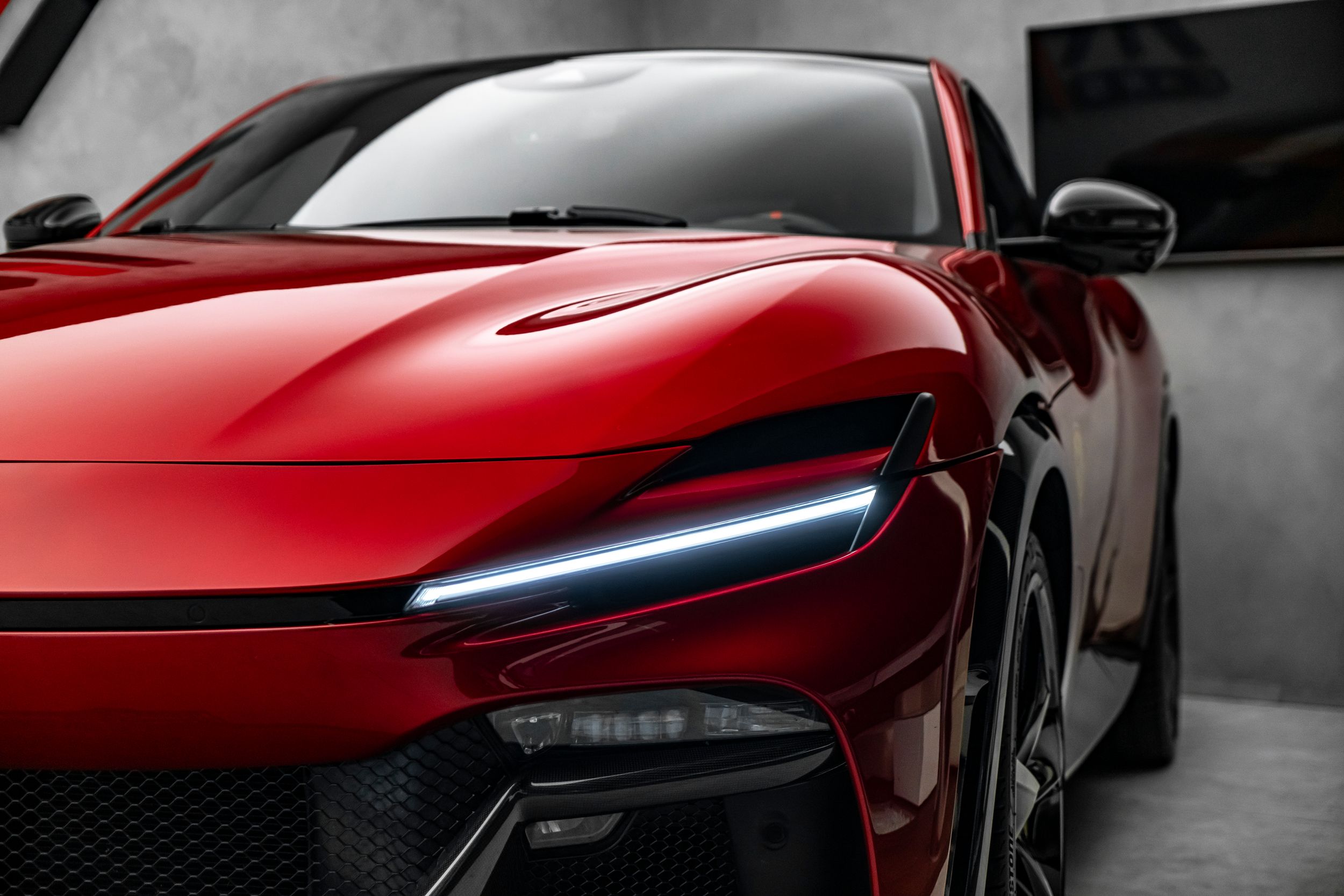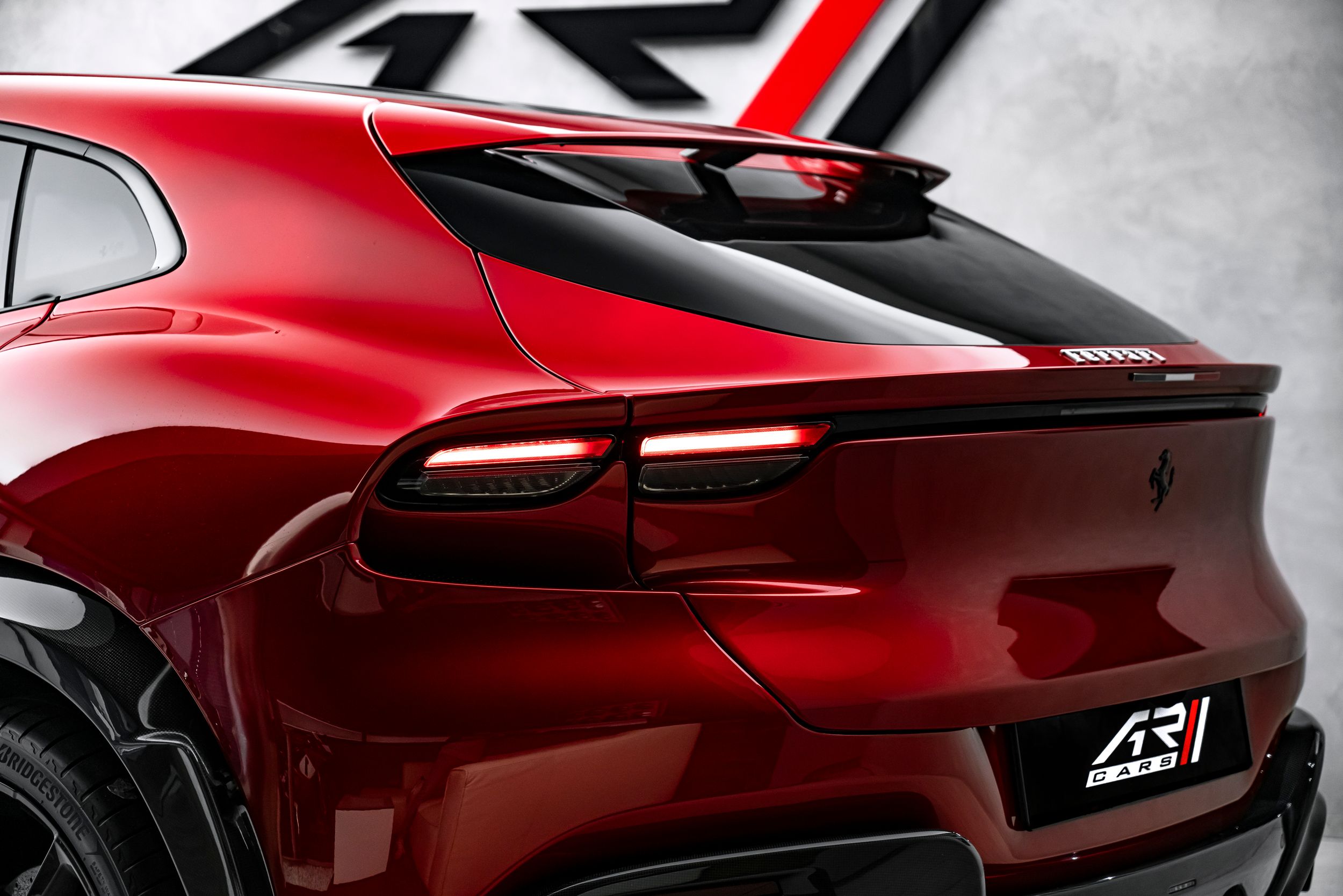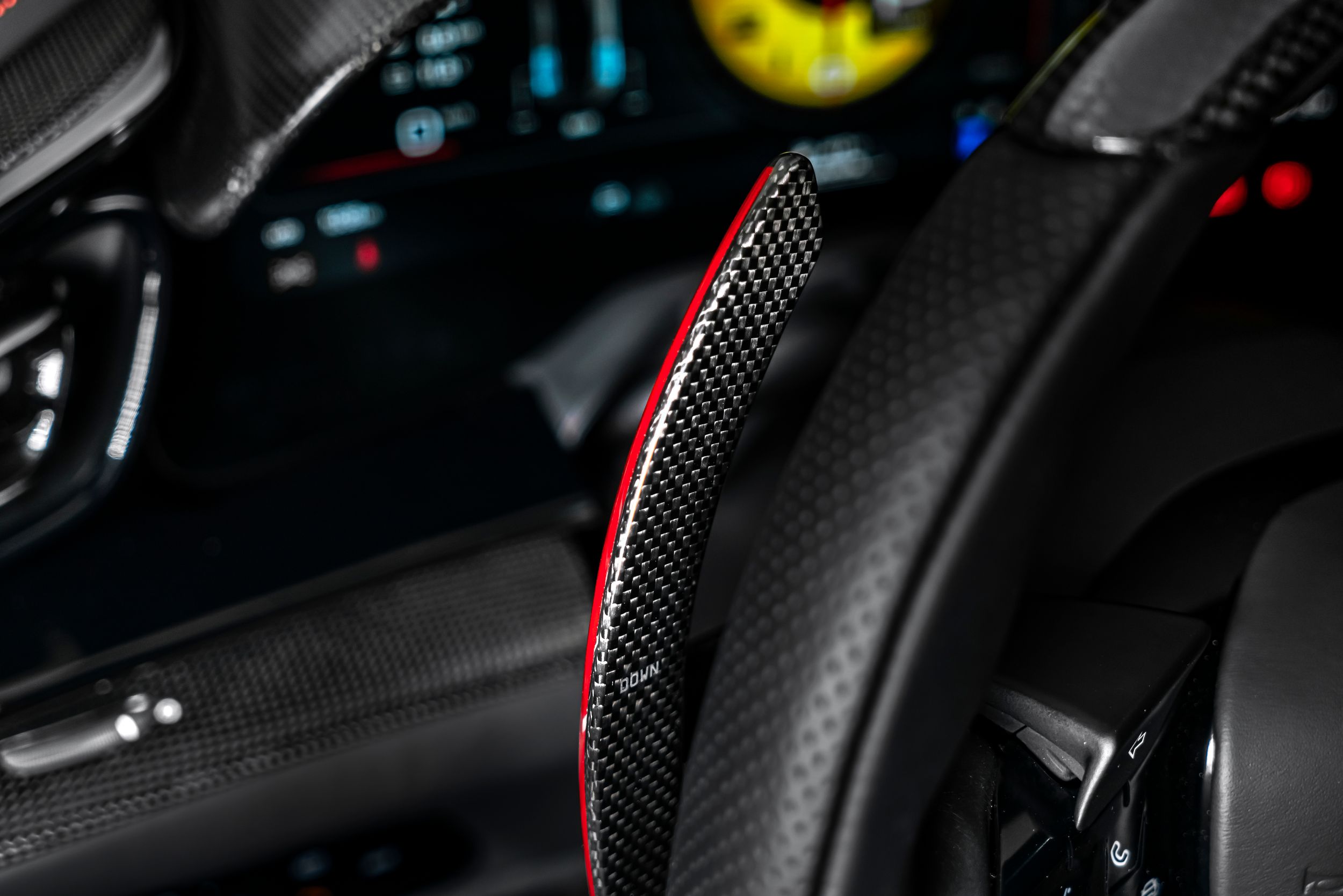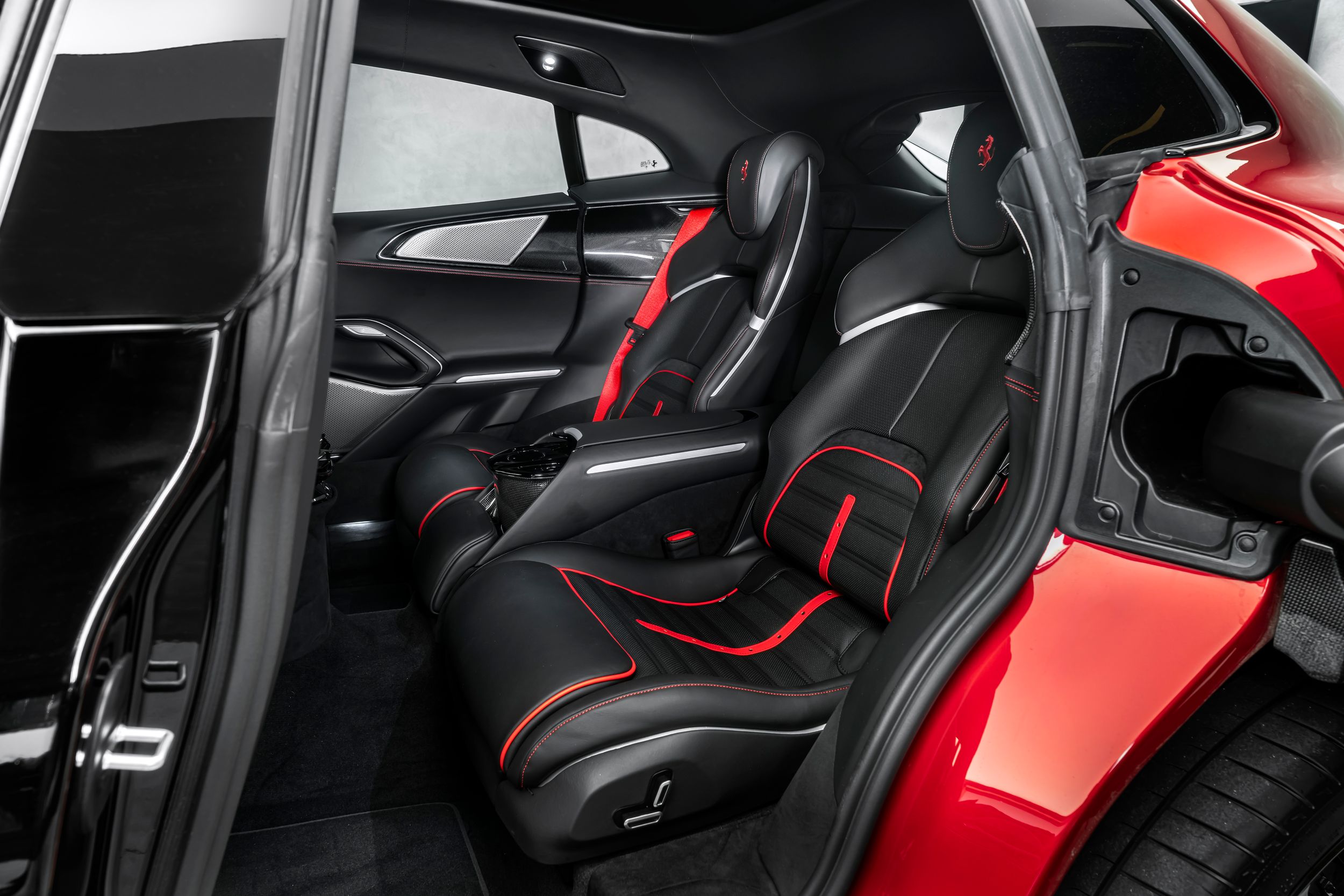 Airbrush shield, air quality sensor, yellow brake callupers, carbon fibre wheelhouse flares, rear diffuser in carbon fibre, carbon fibreouter mirrors, carbon fibre vehicle key, carbon fibre instrument cover, carbon fibre door panels, exteriour sill kickplate in carbon, upper part of centre console in carbon fibre, coloured passenger compartment details, myferrari conncet activated, coloured seat belts, single-colour dreamline on F1 Paddles, panoramic roof, front lift, cavallino stitched on headrest, black tailpipe tips, carbon fibre front spoiler, long narrow it. Flag motif, luggage compartment kit, front seats massag+vent, set of genuine winter wheels, matte black rear cavallino, cavallino+satin ferrari badge, myferrari connect readiness hw, leather upholstery, carb.fib. steering wheel + leds, single colour livery on upper steering wheel rim+lower panel, special 4-layer colours, privacy rear windows, rev counter in yellow, glossy wheels, liquid silver forged wheel, rear seats vent.+ heat, smartphone interface, high-end audio systém, custom specifications, coloured special stitching O.R., heated steering wheel, seats with special design, surround view, cardless svr anti-theft systém, wheel stud bolts in titanium, upper part of passenger compartment in leather, wireless smartphone charger, active matrix led headlights