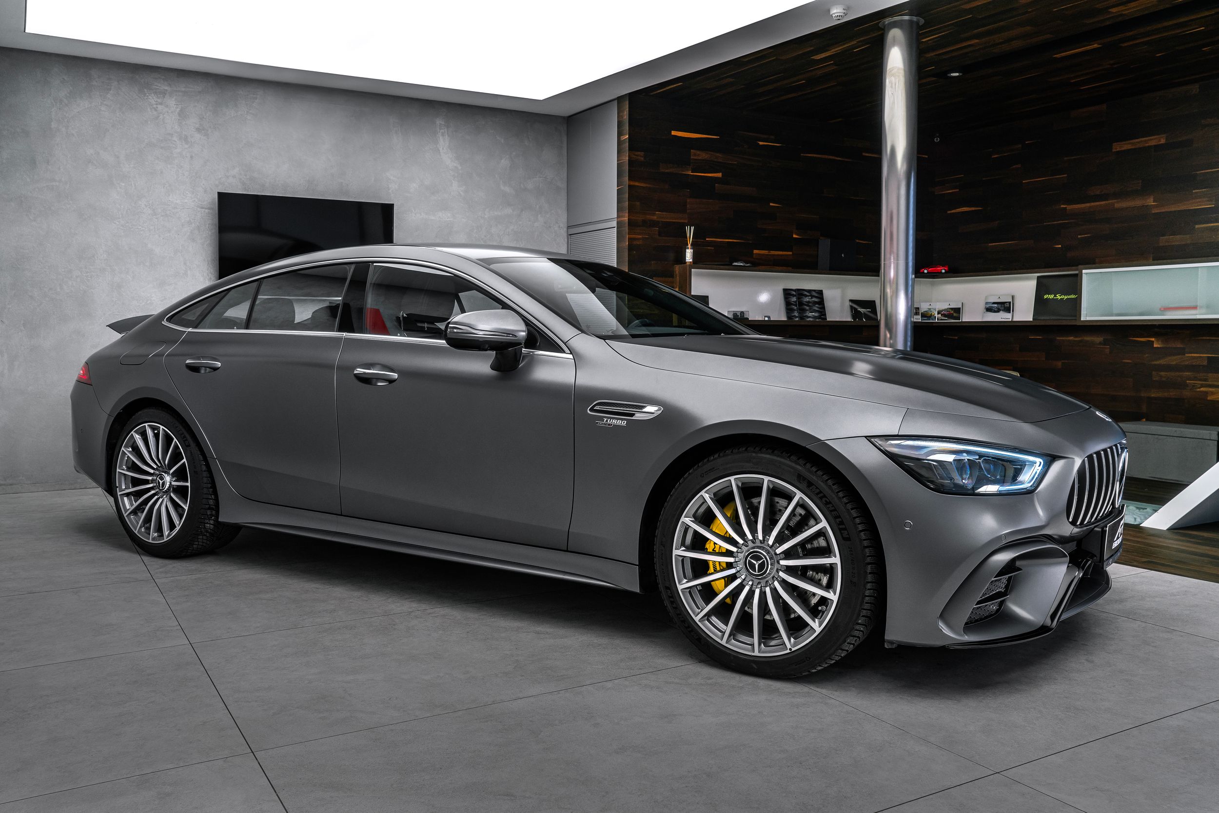 Balíček úložných prostor, Balíček Air Balance, Balíček AMG Dynamic Plus, Audionavigační systém: COMAND Online, Osvětlené lišty prahů (AMG), Elektron. Diferenciál s omezenou svorností, Regulace komfortu Energising, Paket Driving Assistance Plus, Informační systém řidiče (AMG Performance Media), Třímístná zadní lavice, Head-up displej (čelní pohledový displej), Řízení zadní nápravy AMG, Indukční nabíjecí přihrádka pro chytrý telefon, Interiér: Karbonové obložení (AMG), Čalounění stropu designo Dinamica, 360stupňový kamerový systém, Sdružený přístroj s variabilním displejem (Widescreen Cockpit), Palivová nádrž: 80 litrů, Lakování: designo magno, Vyhřívaný volant, Světelná inscenace AMG (boční prahy s projekční funkcí), Ráfky LM vpředu/vzadu: 9,5x20 / 11x20 (AMG, vícepaprskové, titanově šedé, vysoce lesklé), Paměťový paket, Paket aktivních sedadel Multicontour, Sada na opravu pneumatik (Tirefit), Dělené/sklopné opěradlo zadních sedadel, Vyhřívané ostřikovače čelního skla, Vysílač pro otevírání garážových vrat (integrovaný), Potahy/čalounění sedadel: Exkluzivní kůže nappa 2-barva, Přední sedadla: klimatizace, Vyhřívaná přední sedadla Plus, Paket zrcátek, Sportovní odpružení (AMG Ride Control +), Surround systém Burmester, Touchpad (středová konzola), Stylingový paket exteriéru V8, Příprava digitálního klíče od vozidla v chytrém telefonu, Paket tepelného komfortu vpředu, Přídavné topení (přídavné topení)