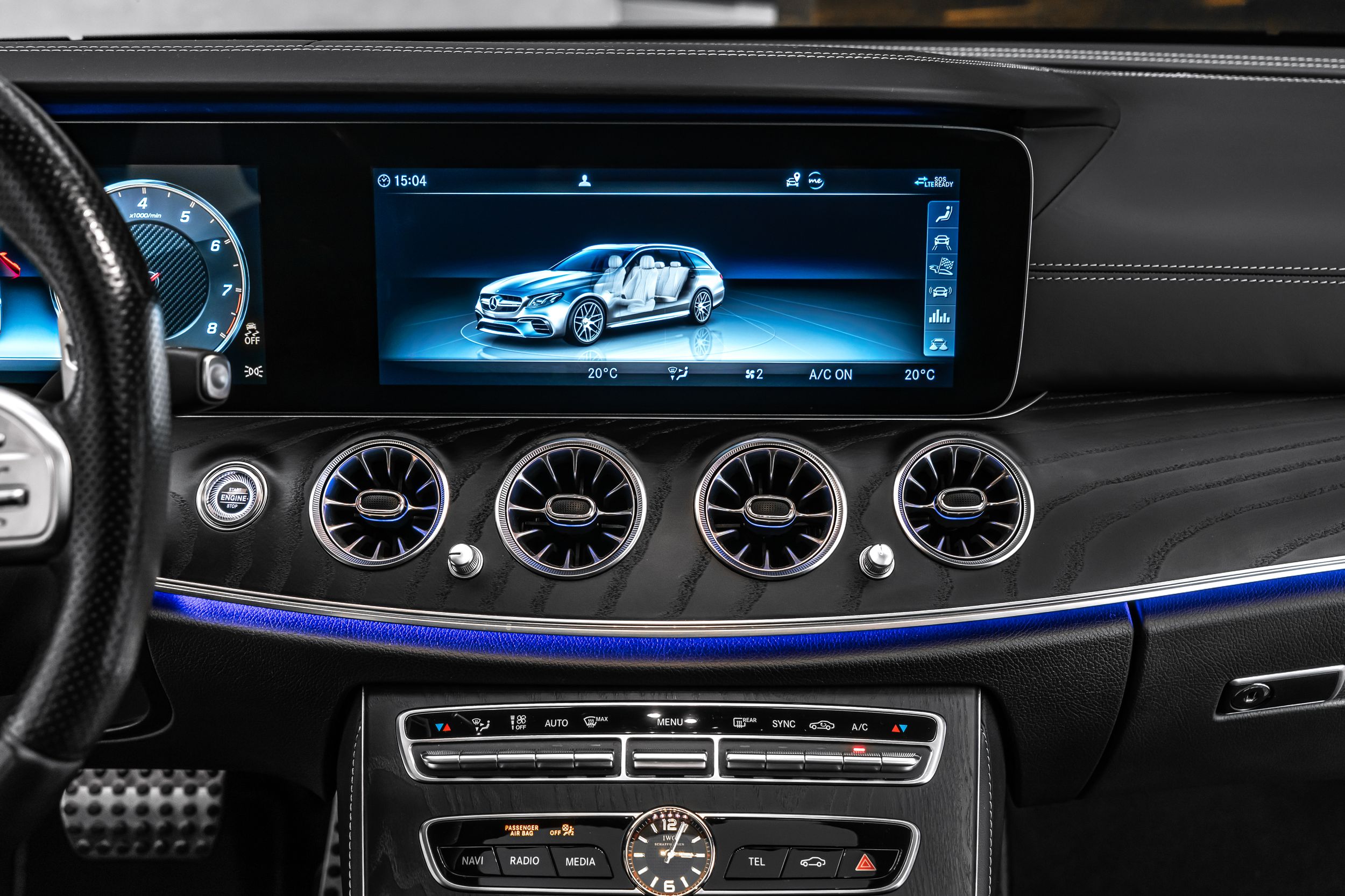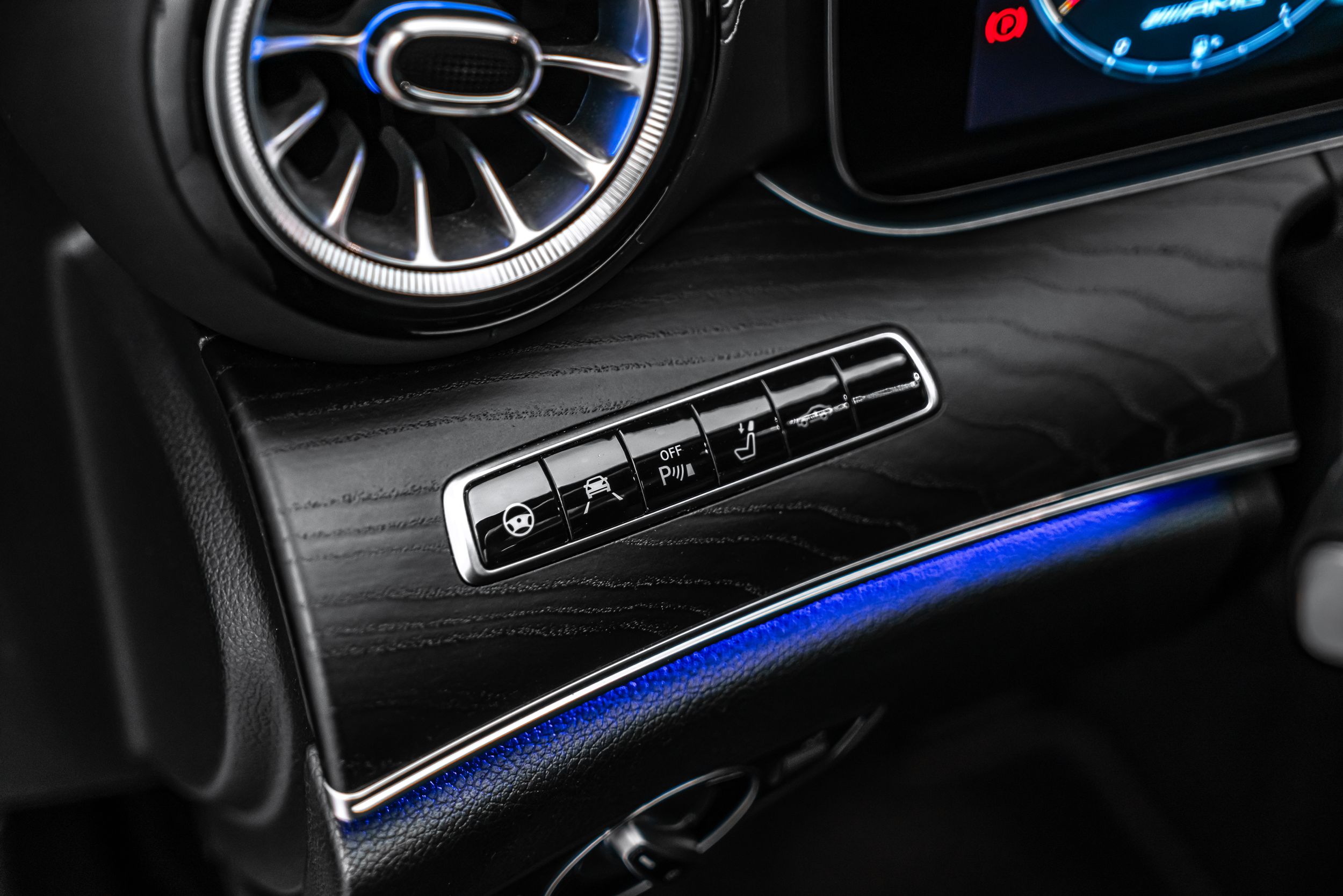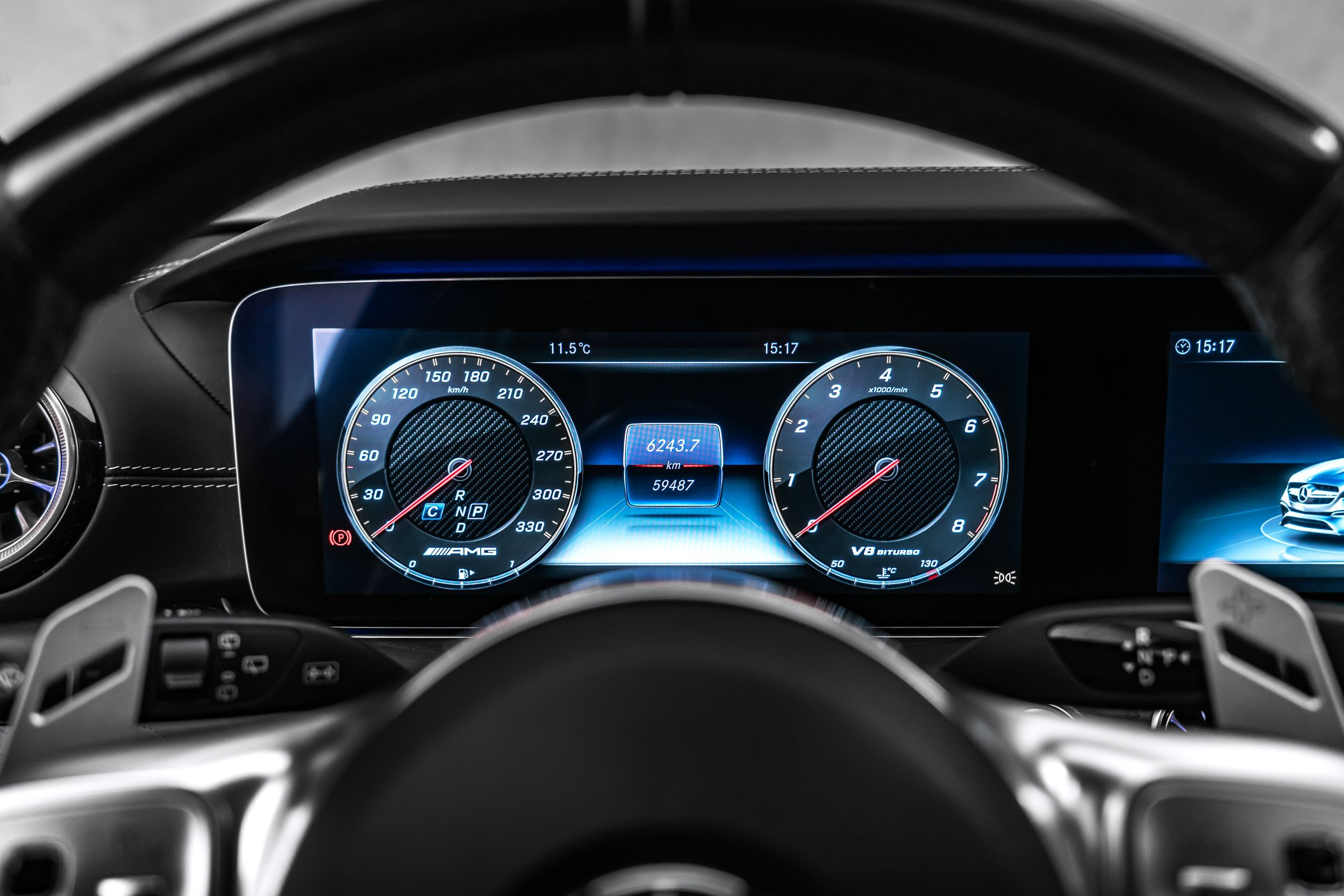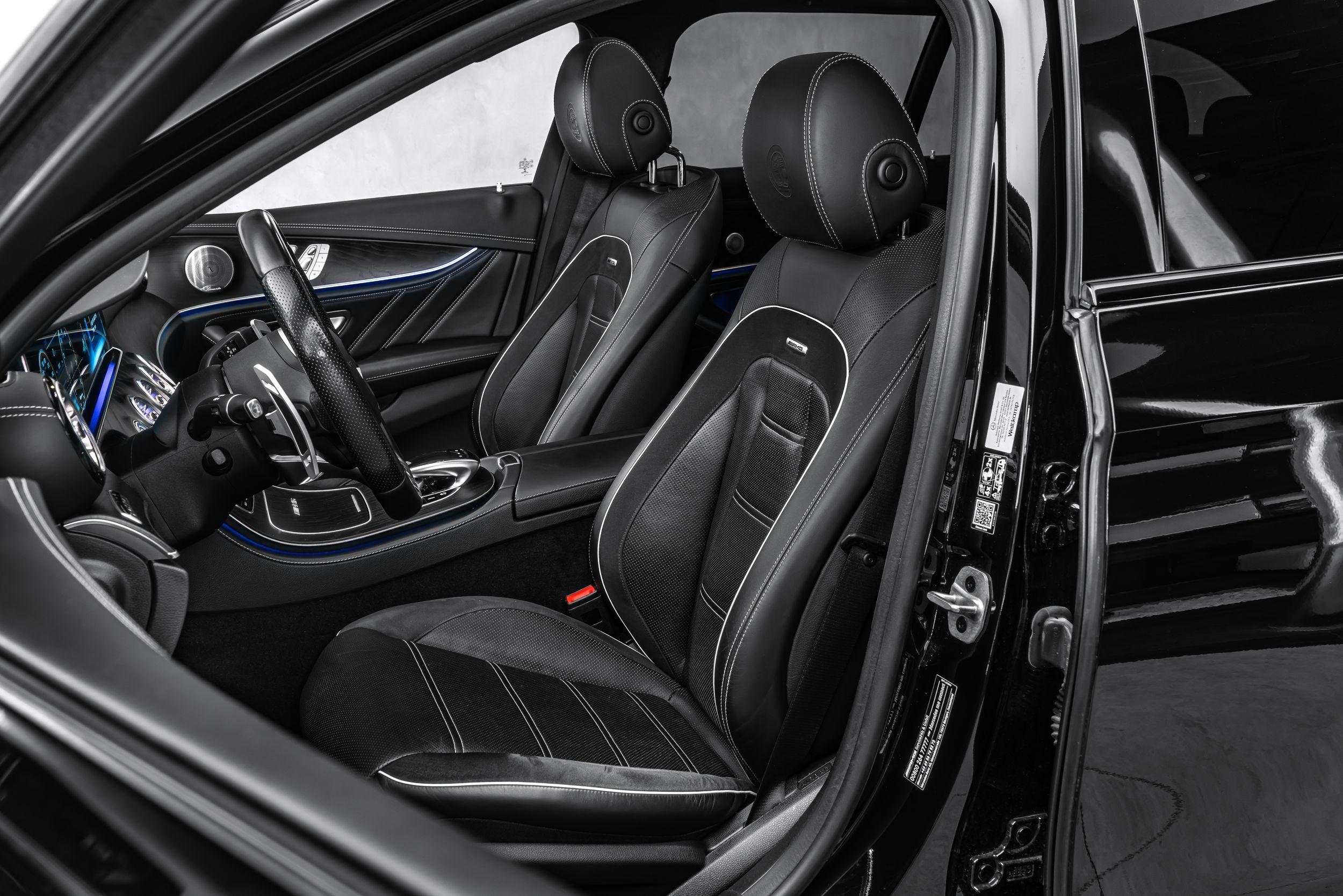 Úložný balíček, audionavigační systém COMAND Online, DAB tuner (digitální rádiový příjem), balíček asistenčních systémů Plus, informační systém řidiče (AMG Performance Media), Vozidlo bez označení modelu, Vnitřní obložení: Jasanové dřevo, černé, Palivová nádrž: 80 litrů (zvětšená kapacita, objem 2), Paměťový balíček, Metalický lak, Středová konzola v jasanovém dřevě, černé, Multibeam LED světlomety, Noční balíček (AMG), Elektrické panoramatické posuvné střešní okno (plně prosklená střecha), Parkovací balíček s 360° kamerou, Sada na opravu pneumatik (Tirefit), Vyhřívaný ostřikovač čelního skla, Přední sedadla: klimatizace, Integrace chytrého telefonu, Sportovní výfukový systém (AMG Performance), Systém prostorového ozvučení Burmester, Analogové hodiny.
