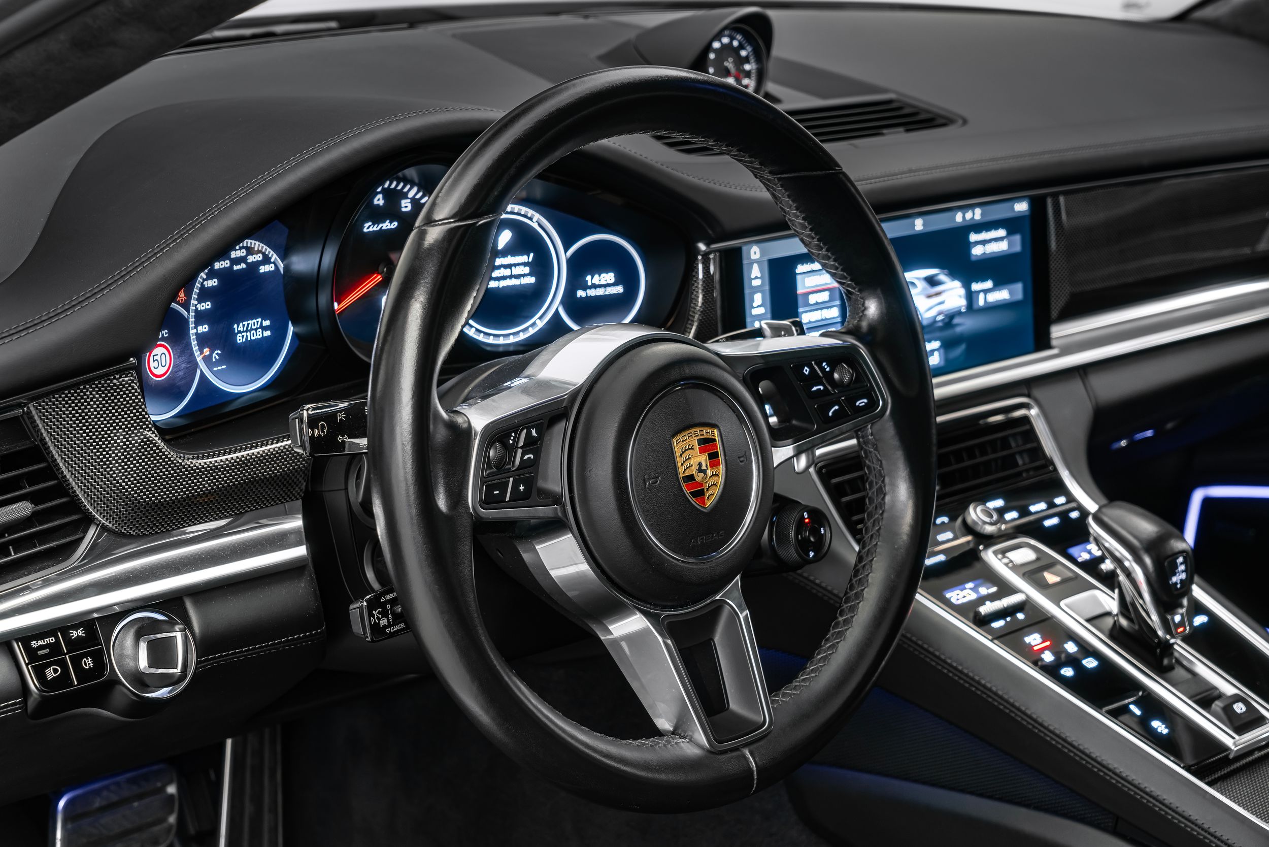 Výbava: Airbagy řidiče/spolujezdce, aktivní kapota, protiprokluzová regulace (ASR), typ pohonu: pohon všech kol, asférické vnější zrcátko vlevo, elektricky sklopná vnější zrcátka, elektricky nastavitelná a vyhřívaná vnější zrcátka, vnější zrcátka s automatickou funkcí stmívání, vnější zrcátka s LED ambientním osvětlením, LED směrovky, červeně lakované brzdové třmeny, Connect Plus (Bluetooth, Apple CarPlay, WLAN, systém lokalizace vozidla), strop Alcantara, alarm s monitorováním interiéru, automatické zapínání světlometů, prahové lišty (hliník), asistenční systém řidiče: parkovací asistent vpředu a vzadu, hliníkové lišty oken, čelní sklo s pásovým filtrem v horní části, rohože, kryt zavazadlového prostoru/roleta, 8stupňová převodovka – dvouspojková převodovka (PDK), držáky nápojů, LED světlomety včetně Porsche Dynamic Light System (PDLS), zadní výklopné dveře s automatickým otevíráním a zavíráním, LED zadní světla, stěrač zadního skla, adaptivní zadní spoiler (2stupňový), výbava interiéru: hladká kůže, standardní barva kůže, filtr interiéru: filtr s aktivním uhlím (filtr pachů), vnitřní zrcátko s automatickým stmíváním, balíček interiéru: dřevo, ořechový kořen, úchyty Isofix pro dětské sedačky na zadních sedadlech, karoserie: 4 dveře, dvouzónová automatická klimatizace, kolenní airbag, komfortní sedadla vpředu včetně 14násobného nastavení sedadel a paměťového balíčku, komfortní přístup (bezklíčové otevírání dveří), systém hlavových airbagů (hlavové airbagy), palivová nádrž: 90 litrů, kola z lehké slitiny, lakované blatníky