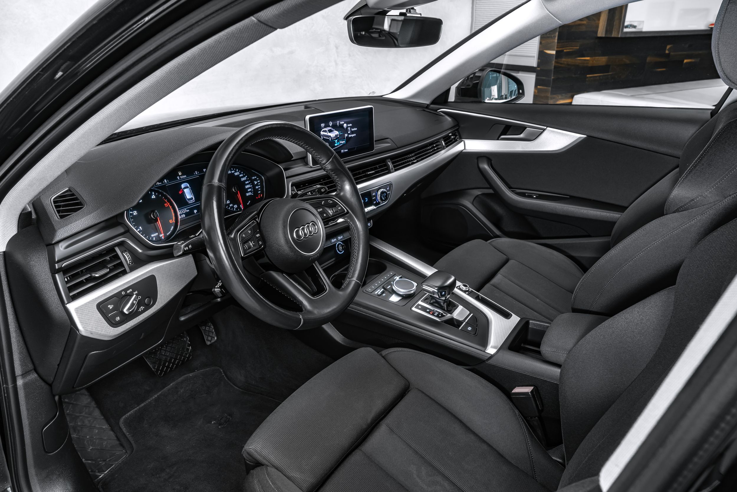 Paket pro úložný a zavazadlový prostor, Audi connect (systém tísňového volání a asistenční systém), elektricky nastavitelná vnější zrcátka. Nastavitelná, vyhřívaná a sklopná vnější zrcátka, handsfree systém Bluetooth s hlasovým rozpoznáváním (Audi Phone Box), černý látkový čalounění stropu, dvojité sluneční clony (posuvné a výsuvné), parkovací asistent vpředu a vzadu s akustickým a vizuálním displejem (APS Plus), asistenční systémy řidiče: systém ochrany cestujících (Audi pre sense basic), 24litrová nádrž na močovinu (SCR), automaticky stmívatelné zpětné zrcátko, třízónová automatická klimatizace, 54litrová palivová nádrž, kožený volant (3ramenný) s multifunkčním ovládáním Plus, osvětlená kosmetická zrcátka, multimediální rozhraní MMI Navigation Plus s MMI Touch, paket pro nekuřáky, vyhřívaná přední sedadla, audiosystém DSP / Audi Soundsystem. Sportovní podvozek.