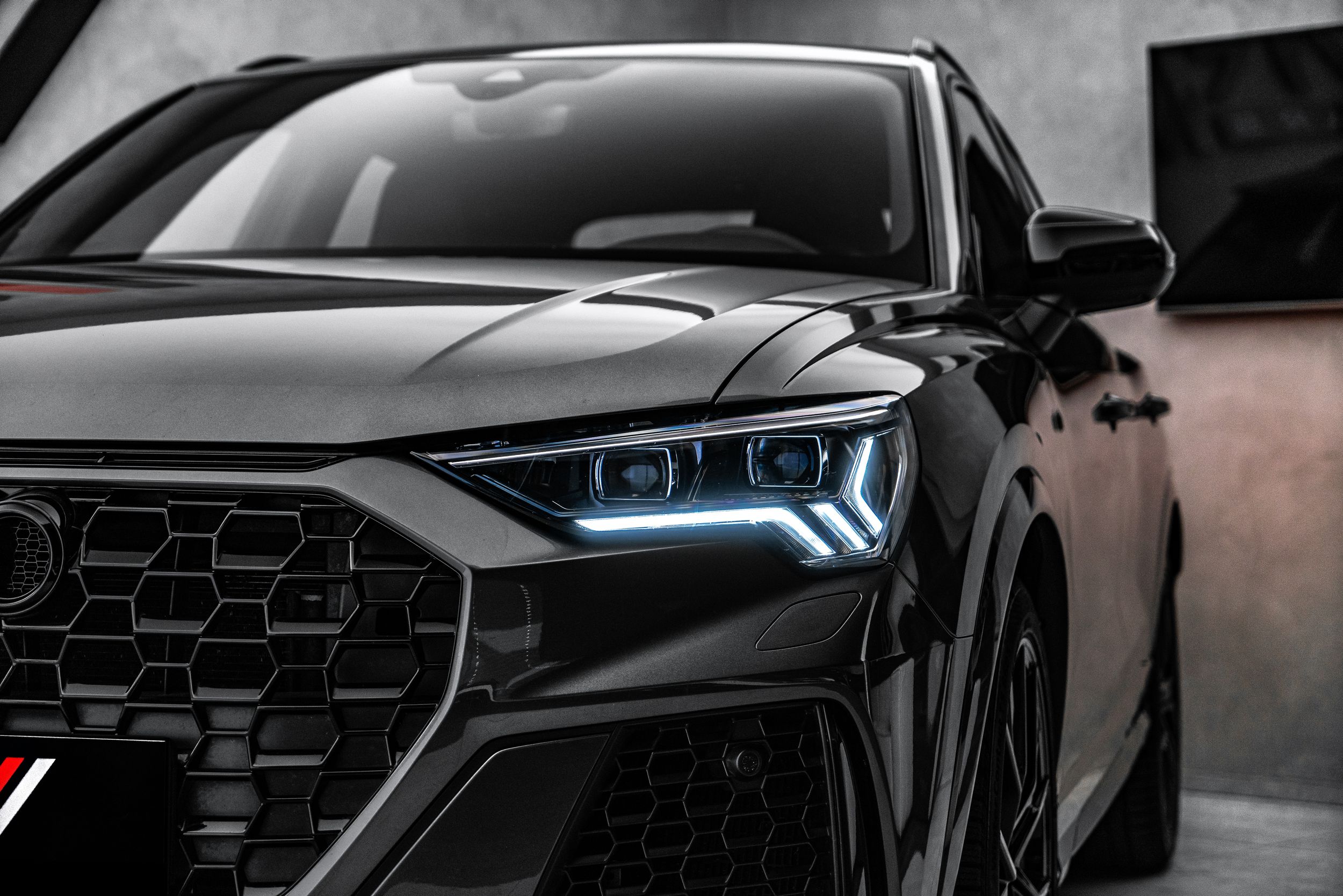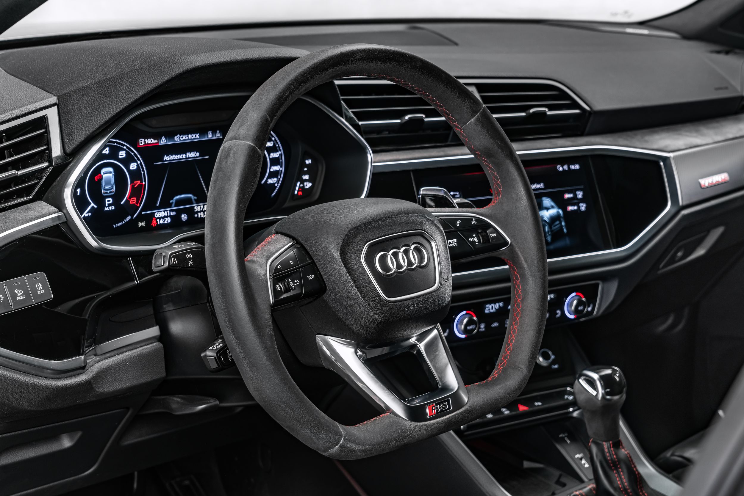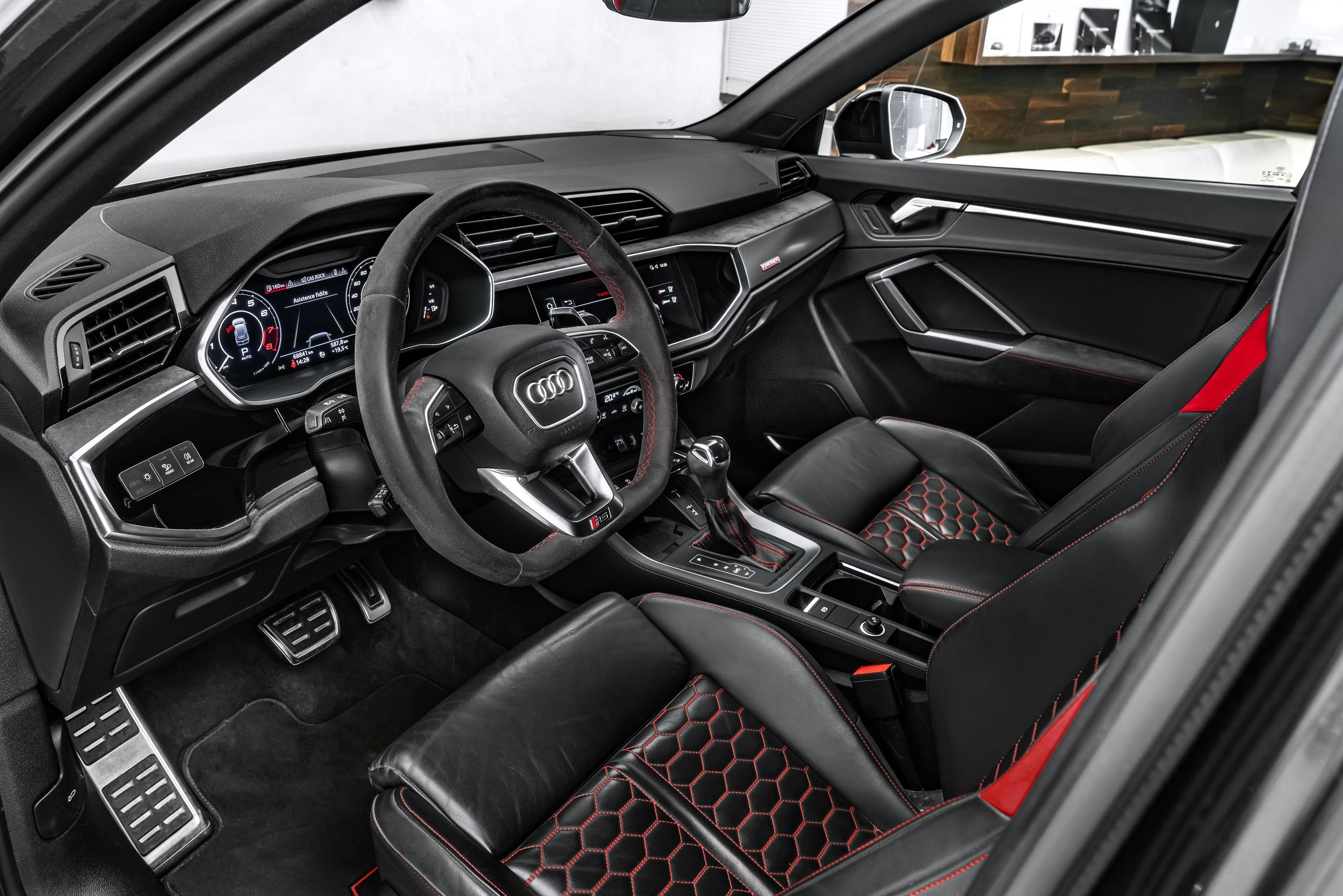Paket úložného prostoru a zavazadlového prostoru, příprava pro tažné zařízení, Audi connect (internetové služby), Audi smartphone interface, elektrická vnější zpětná zrcátka. nastavitelný, vyhřívaný a sklopný, s automatickým stmíváním a asistentem obrubníku, Bluetooth hands-free systém s rozpoznáváním hlasu (Audi Phone Box), střešní ližiny (hliník), designový paket: RS červená, ochrana kol proti krádeži (zámky ráfků), asistenční systém řidiče: asistent sjíždění z kopce, elektrické víko zavazadlového prostoru. ovládané (otevřít + zavřít), vnitřní zpětné zrcátko s automatickým stmíváním, úchyty Isofix pro dětskou sedačku na sedadle spolujezdce, kamerový systém s výhledem do okolí (Top View), keramický brzdový systém vpředu, brzdové třmeny lakované v antracitové barvě, digitální přístrojový štít (virtuální kokpit plus), 3zónová komfortní automatická klimatizace, paket obrysového / ambientního osvětlení (plus), LM ráfky (high-armen antracitové 2x1) ráfky LED černé mediální rozhraní MMI Navigation Plus s MMI Touch, paket optiky černých kroužků a nápisů Audi, systém sledování tlaku v pneumatikách, sportovní výfukový systém RS, sportovní sedadla RS vpředu, elektrická přední sedadla. nastavitelná, vyhřívaná přední sedadla, speciální lakování s šedým perleťovým efektem Daytona, zvukový systém Bang & Olufsen, sportovní podvozek RS plus s ovládáním tlumičů.