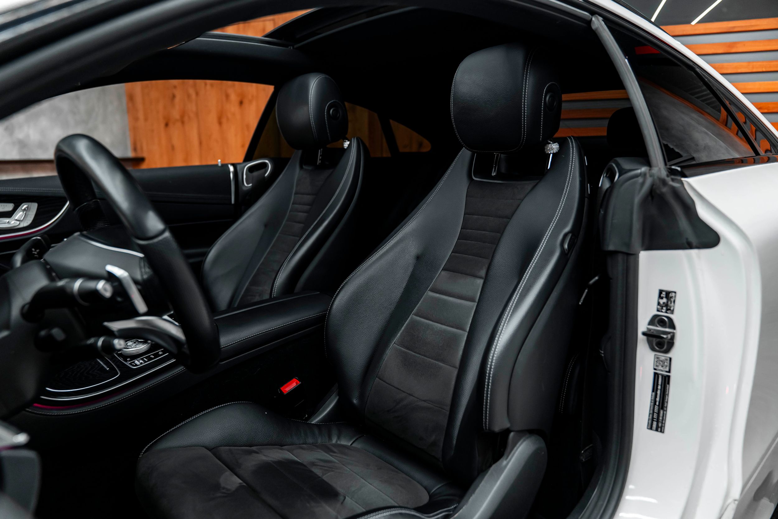 Ambientní osvětlení, palubní deska čalouněná umělou kůží Artico, výbavový paket: Energizing Plus, high-end paket asistenčních systémů řidiče, síťová přepážka do zavazadlového prostoru, head-up displej (zobrazení vpředu), víko zavazadlového prostoru s automatickým otevíráním a zavíráním, high-end paket infotainmentu, interiér: jemné jasanové dřevo, černá, komfortní automatická klimatizace (3zónová Thermotronic), high-end paket komfortu, zvětšená palivová nádrž, high-end paket osvětlení, kola z lehkých slitin 8,5x20 (AMG, 5 dvojitých paprsků, černá), metalický lak, paket Night, zadní boční airbag, čalounění sedadel: kůže, přední sedadla: klimatizace, systém Burmester Surround, nezávislé topení (nezávislé topení).