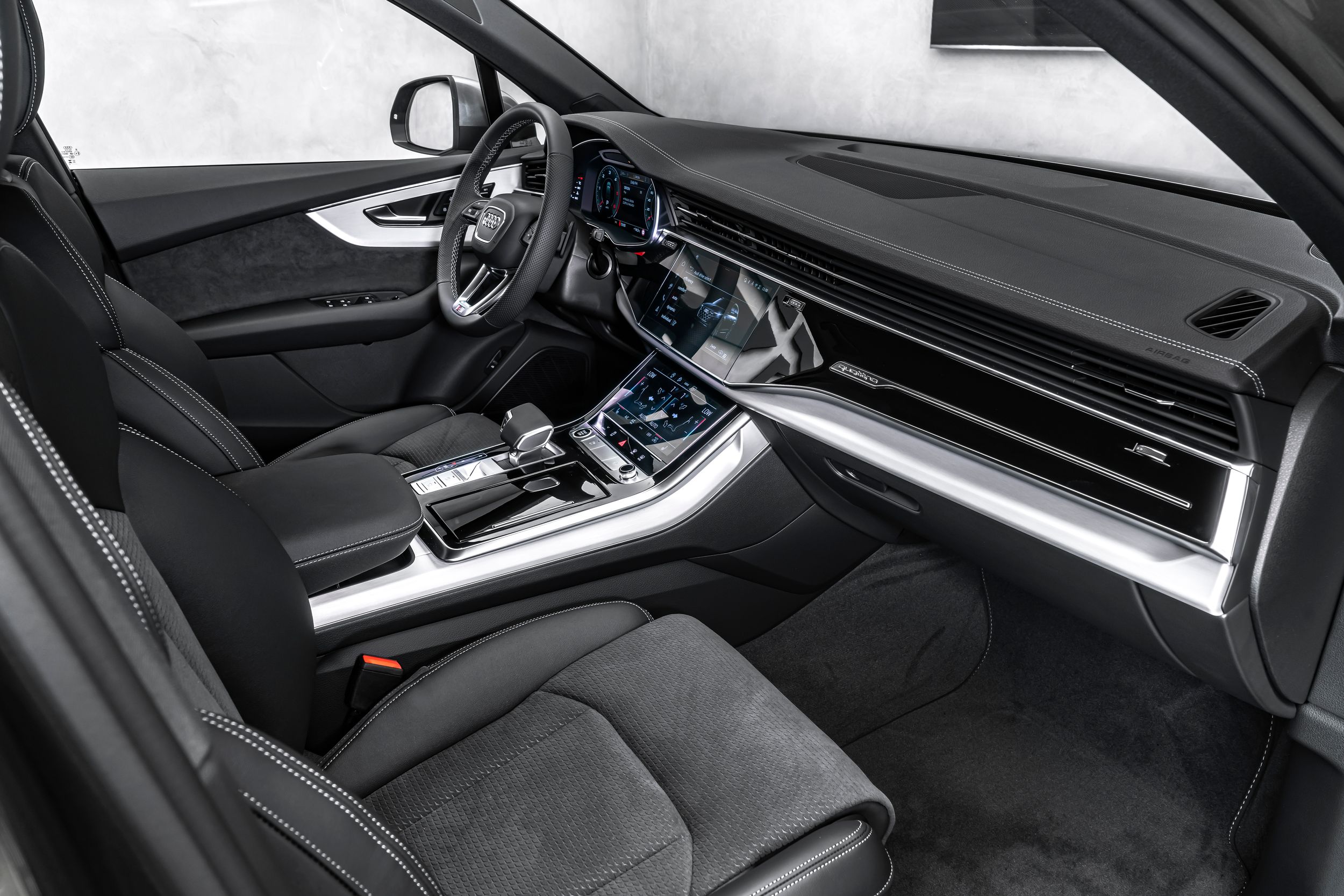 Kabína kombinuje prémiovú kožu a Alcantaru.