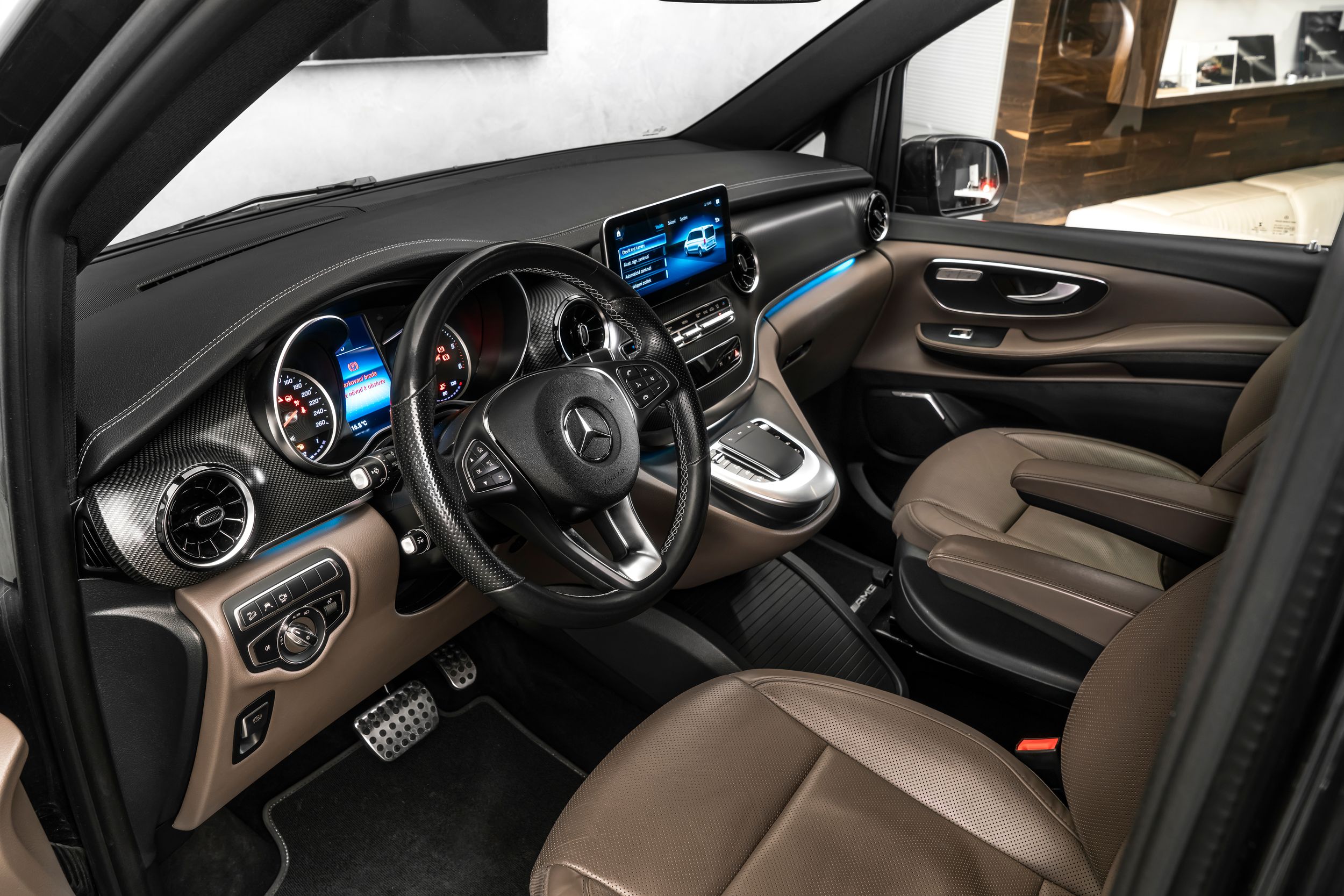 Úložná síť na opěradle levého předního sedadla, AMG Line, střešní nosiče (eloxovaný hliník), paket interiérového designu, asistenční systémy řidiče: aktivní brzdový asistent, asistenční systémy řidiče: asistent dálkových světel plus, asistenční systémy řidiče: systém dopravních informací v reálném čase, systém tlumení odpružení Agility Control, okna v nákladovém prostoru/prostoru pro cestující: - elektricky ovládaná. Výsuvná zadní levá/pravá boční zrcátka, velurové rohože AMG v kabině, víko zavazadlového prostoru s automatickým otevíráním a zavíráním, interiérové ​​obložení: obložení s karbonovým vzhledem, automatická klimatizace vzadu (Tempmatik), komfortní automatická klimatizace Thermotronic, zvětšená palivová nádrž, dělicí stěna v zavazadlovém prostoru, metalický lak, středová konzola vpředu s roletou/odkládací přihrádkou, multimediální systém MBUX (dotyková obrazovka 10,25"), navigační systém pro multimediální systém MBUX, parkovací paket s 360° kamerou, rezervní kolo se zvedákem, elektricky posuvné dveře vlevo, elektricky posuvné dveře vpravo, sedadla v kabině: klimatizovaná sedadla řidiče a spolujezdce, sedadla v kabině: sedadlo řidiče s bederní opěrkou, sedadla v zavazadlovém prostoru/prostoru pro cestující: 2. řada, komfortní 3místná lavice, integrace chytrého telefonu (Apple CarPlay a Android Auto), paket zrcátek, paket varování před opuštěním jízdního pruhu, 2 x 12V zásuvky v zavazadlovém prostoru/prostoru pro cestující, systém prostorového ozvučení, audiosystém Burmester, paket stolků, tónovaná zadní okna / černá skla, příprava pro navigační systém (pro multimediální systém MBUX), celková přípustná hmotnost 3,20 t.